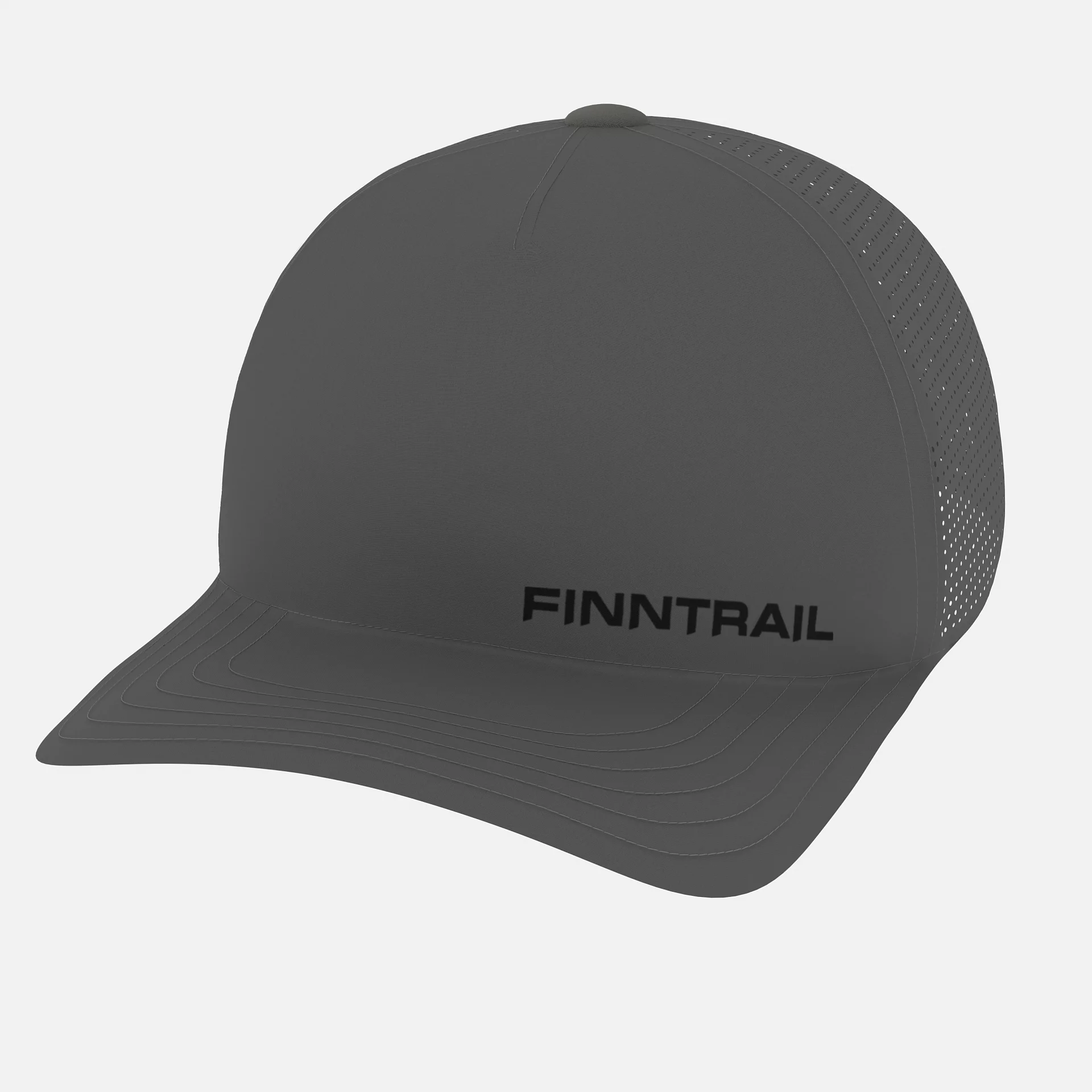 Lightweight Spinner cap made from moisture-wicking fabric with laser-cut side and back panels for enhanced breathability. It features a sturdy curved visor, an inner sweatband to manage excess moisture, and an adjustable plastic snap closure for a comfortable fit.