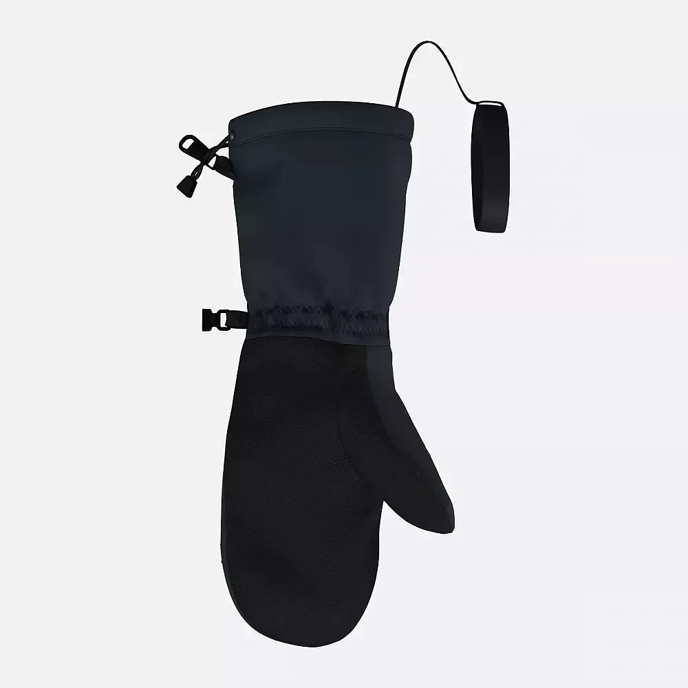 Thermalrate insulation and a soft fleece lining provide lasting warmth and comfort. A pocket on the back holds hand warmers, while reinforced palms and thumbs resist wear. Anatomical cut with elastic inserts ensures a comfortable fit, and the extended cuff with dual adjustment keeps out snow. An elastic safety loop secures the mittens to your wrist, and the inner cuff tightens automatically to retain heat.
