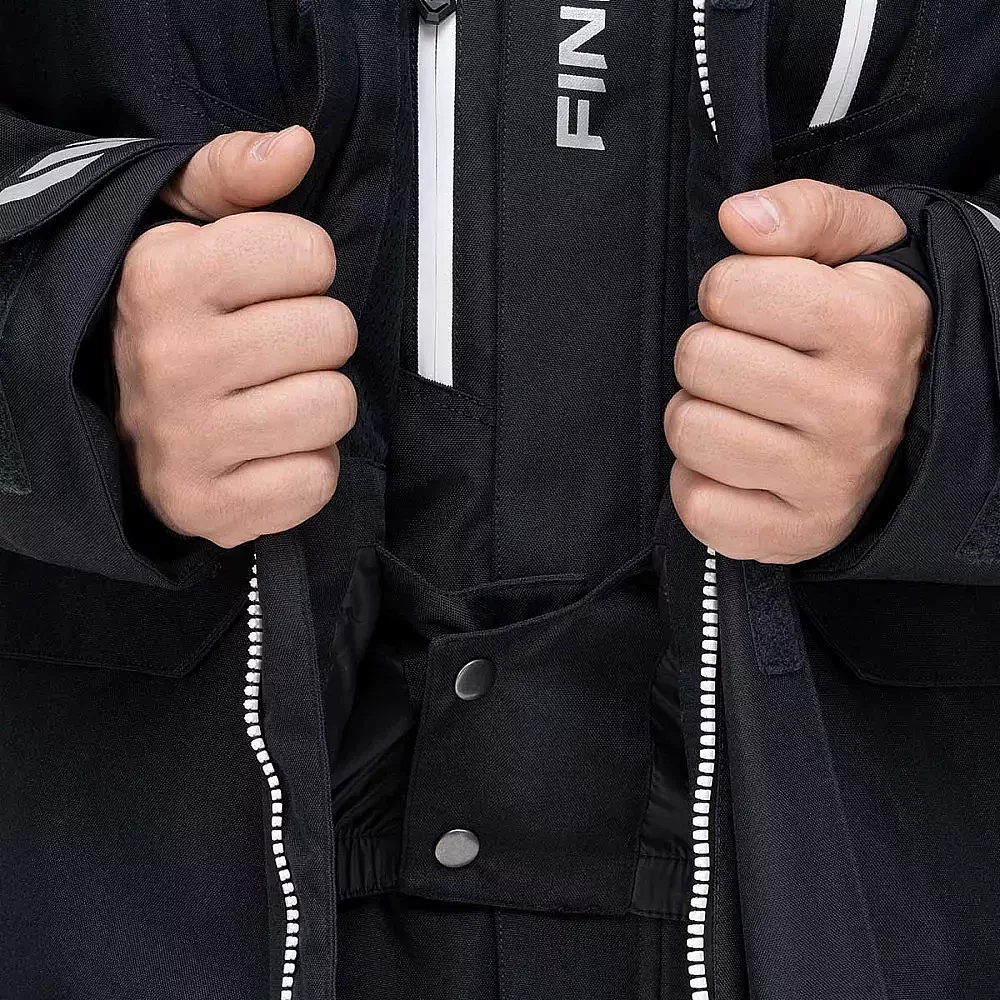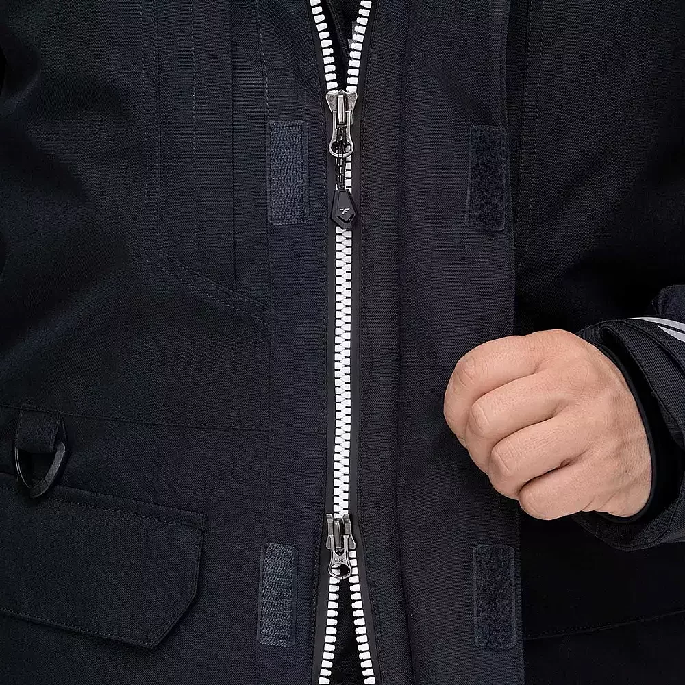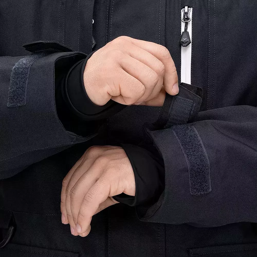 The warm Powerman jacket is designed for riding in severe frost, at temperatures down to -30°C. The ergonomic cut ensures unrestricted movements, while the high collar with hygroscopic microfleece lining and a helmet-compatible adjustable hood provide comfort during active winter rides.