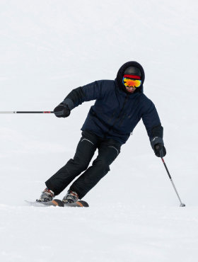 The jacket’s two-way central zipper is protected by a Velcro storm flap. The hood features a laminated brim and dual-plane adjustment for better coverage. Inner elastic cuffs and outer adjustable cuffs with rubberized branded tips keep snow and wind out. From the safety D-ring for attaching a kill switch to the snowproof skirt and reinforced design, every element is engineered for comfort, durability, and maximum winter performance.