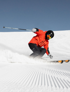 The jacket’s two-way central zipper is protected by a Velcro storm flap. The hood features a laminated brim and dual-plane adjustment for better coverage. Inner elastic cuffs and outer adjustable cuffs with rubberized branded tips keep snow and wind out. From the safety D-ring for attaching a kill switch to the snowproof skirt and reinforced design, every element is engineered for comfort, durability, and maximum winter performance.