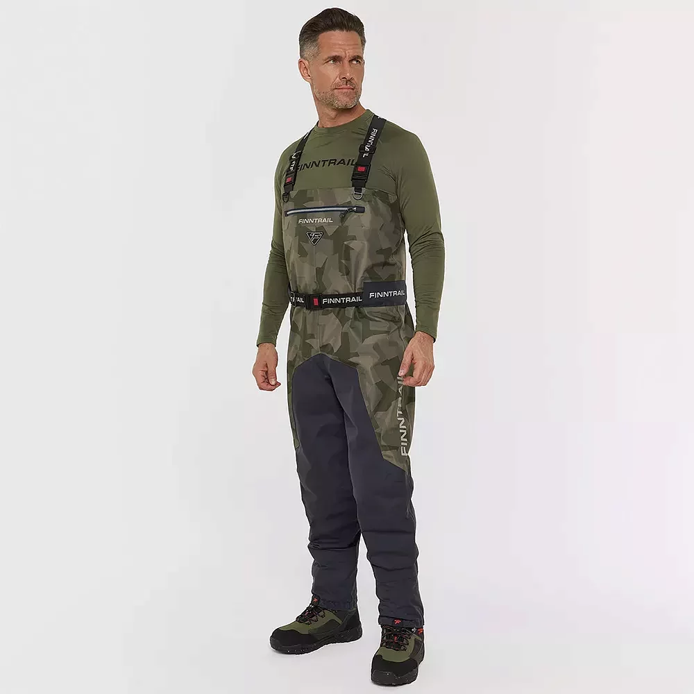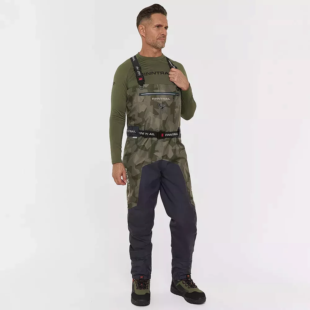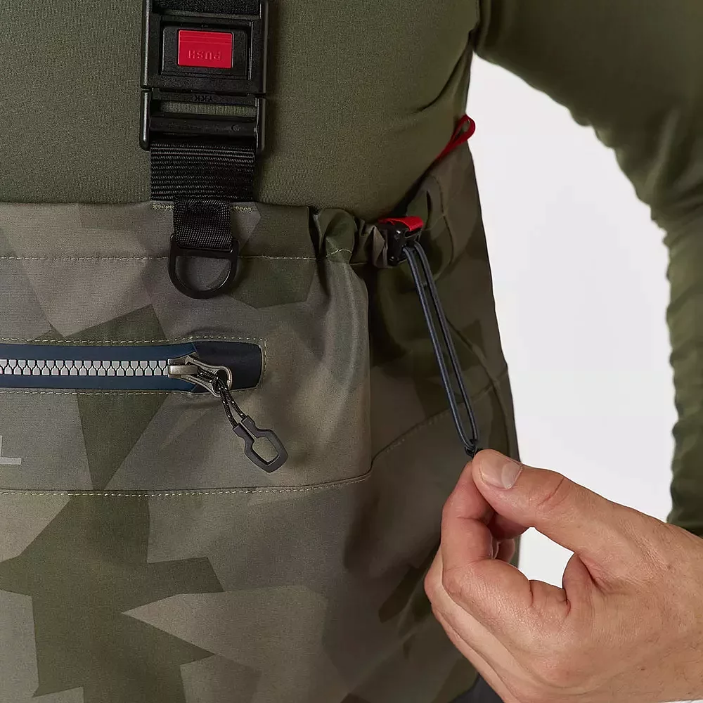 Die Aquamaster Wathose aus hoch atmungsaktivem Material leitet Schweiß und Feuchtigkeit ab und sorgt so auch bei stundenlanger Aktivität für Komfort. Die wasserabweisende Teflon®-Beschichtung verbessert den Feuchtigkeitsschutz, während integrierte D-Ringe die Beine an Ihren Stiefeln befestigen. Verstärkte Neoprensocken sorgen für zusätzlichen Komfort, und eine wasserdichte Handytasche innen sorgt dafür, dass Ihre Wertsachen trocken bleiben. Zusätzliche Kordelzüge auf der Brust ermöglichen eine individuelle, bequeme Passform.