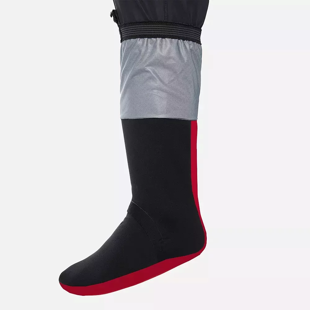 Wathosen mit eingebauten Gummistiefeln werden von Geländereitern aus Gewohnheit und mangels Alternativen verwendet. Sie haben jedoch mehrere Nachteile, insbesondere für Geländewagenfahrer. Gummistiefel stützen den Knöchel nicht. Und wenn man in einem Sumpf festsitzt, ist es viel einfacher, die Wathose herauszuziehen, wenn man eine Strumpfhose trägt, weil sie mit den Stiefeln am Knöchel befestigt ist und leichter ist als eine Wathose mit eingebauten Gummistiefeln. Stockingfoot Wathosen sind heute viel verbreiteter und zuverlässiger, und sie haben viele Vorteile gegenüber den Wathosen mit eingebauten Gummistiefeln: