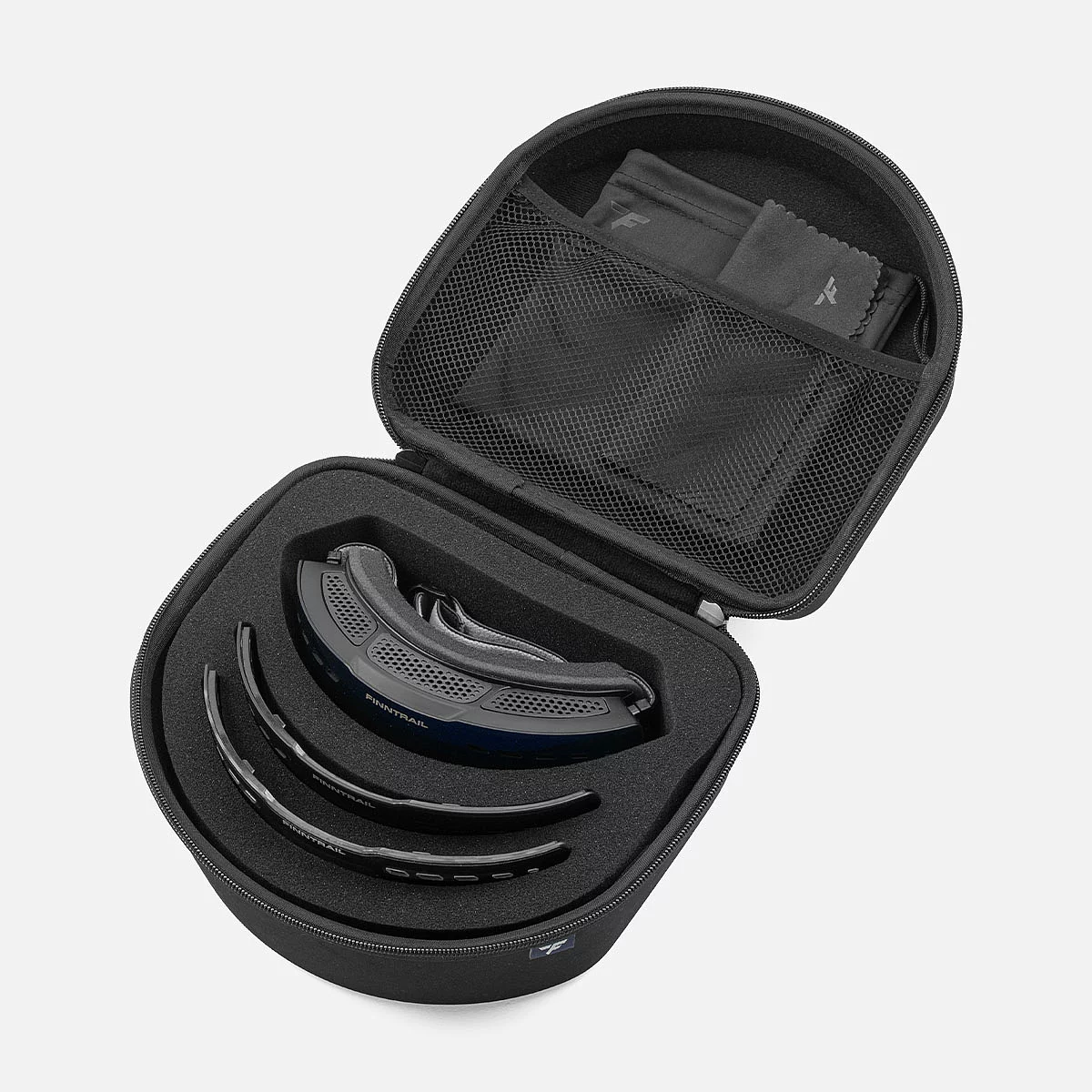 Two interchangeable cylindrical lenses: Black (Cat.2, VLT 19%) for sunny conditions, Transparent/Clear (Cat.0, VLT 82%) for low-light or overcast conditions