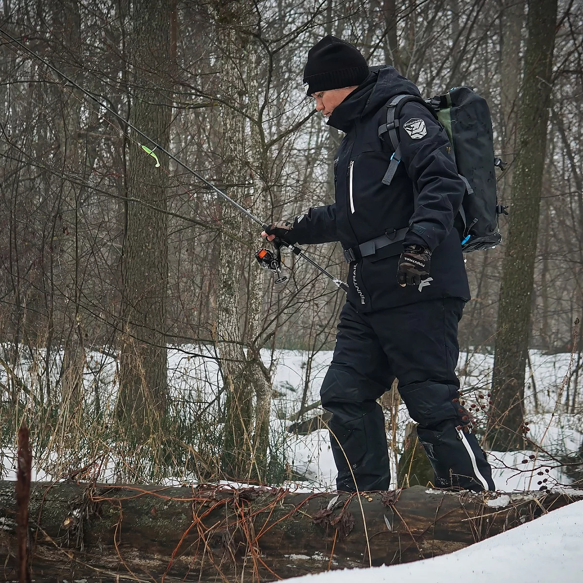 Made of durable 2.5-layer wearproof fabric with a HARD-TEX® membrane and finished with a DWR C6 water-repellent coating, the jacket reliably protects against wind, wet snow, and rain. Fully sealed seams guarantee 100% waterproofing. The Thermalrate insulation retains warmth and comfort in extreme cold.