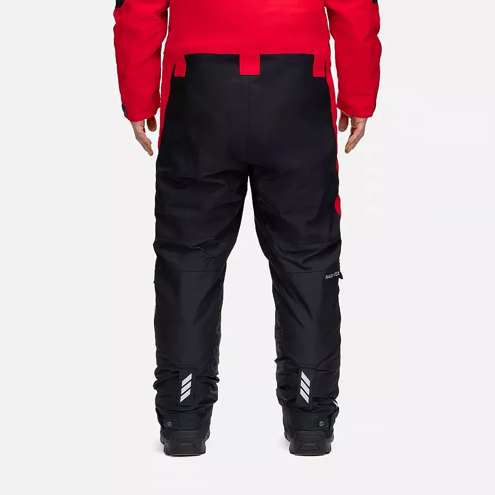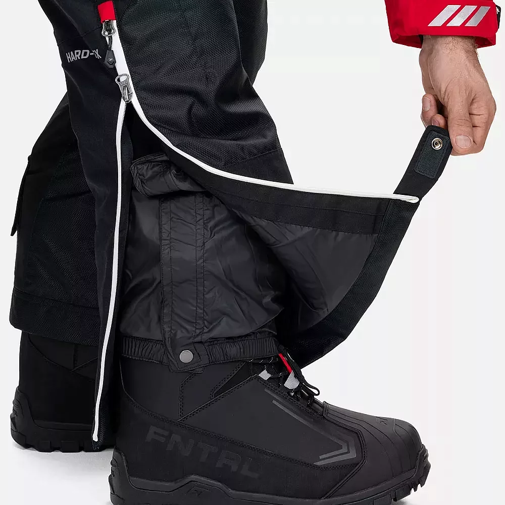 Kaikki kulutuksenkestoalueet, mukaan lukien polvi- ja takapuolen alueet, sisä- ja alalahkeet, on vahvistettu ylimääräisellä kerroksella kestävää materiaalia. Kaikki saumat on teipattu. Haalareissa on henkselit mukavaa korkeuden säätöä varten. Sisäpuolella olevat lycra-hihansuut , joissa on rako peukalolle, tarjoavat mukavuutta ja suojaa tuulta ja lunta vastaan. Lahkeen sisäsuojukset estävät lumen ja kosteuden pääsyn haalareiden ja saappaiden sisään. Kosteutta hylkivä kaksisuuntainen vetoketju suojaa vedeltä ja helpottaa pukemista.