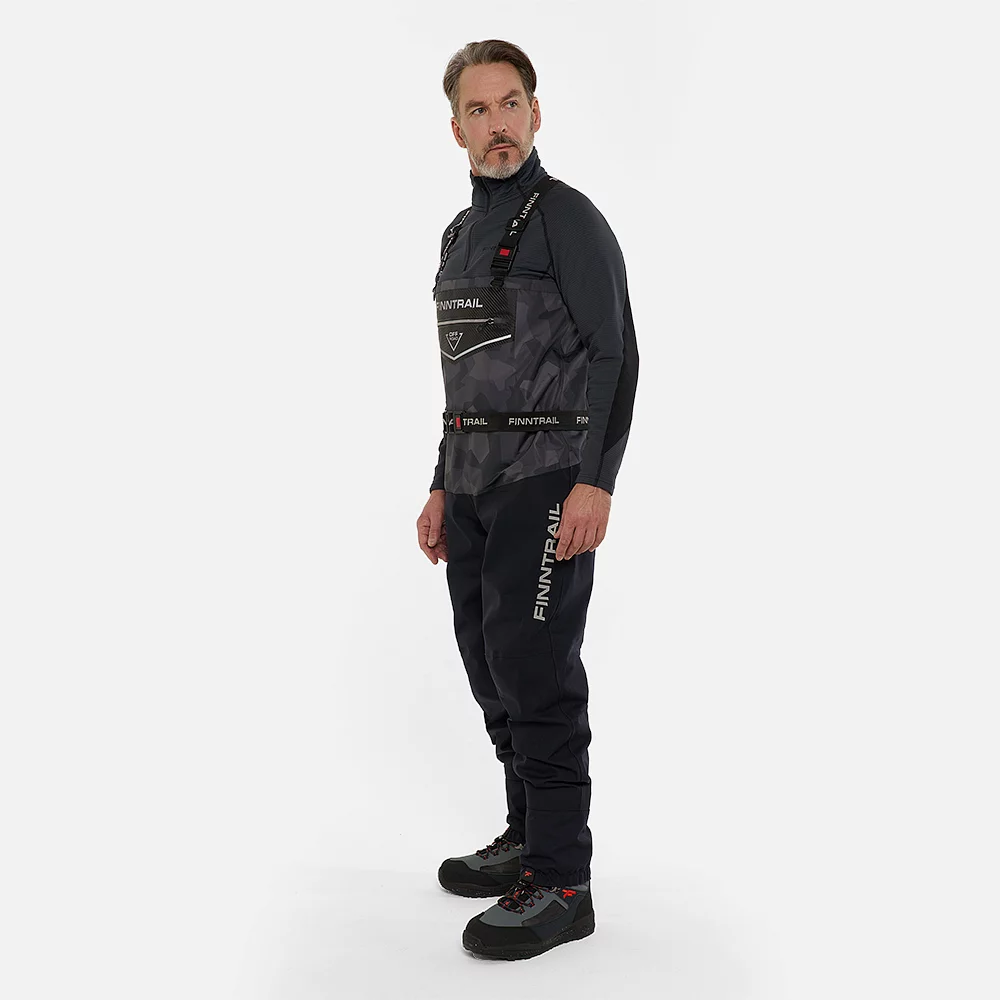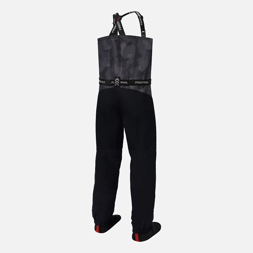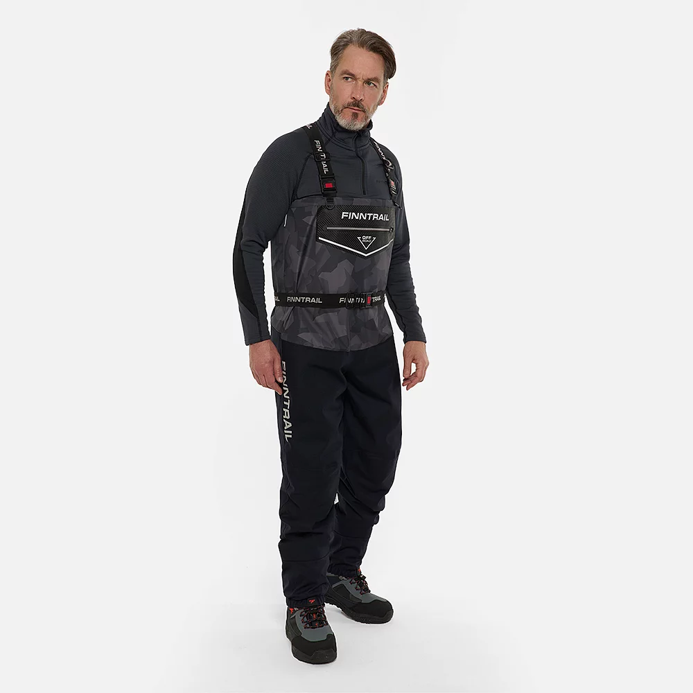 An ergonomic knee cut enhances mobility and reduces material wear in high-movement areas. Elastic suspenders and an adjustable belt with FINNTRAIL branding and a durable YKK buckle allow you to fine-tune the fit to your body. The secure boot hook and elastic lower leg ensure a tight connection with boots, keeping water, dirt, and debris out.