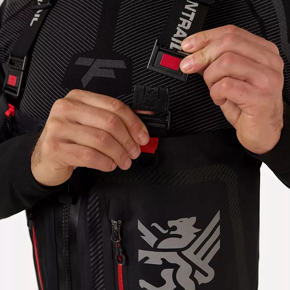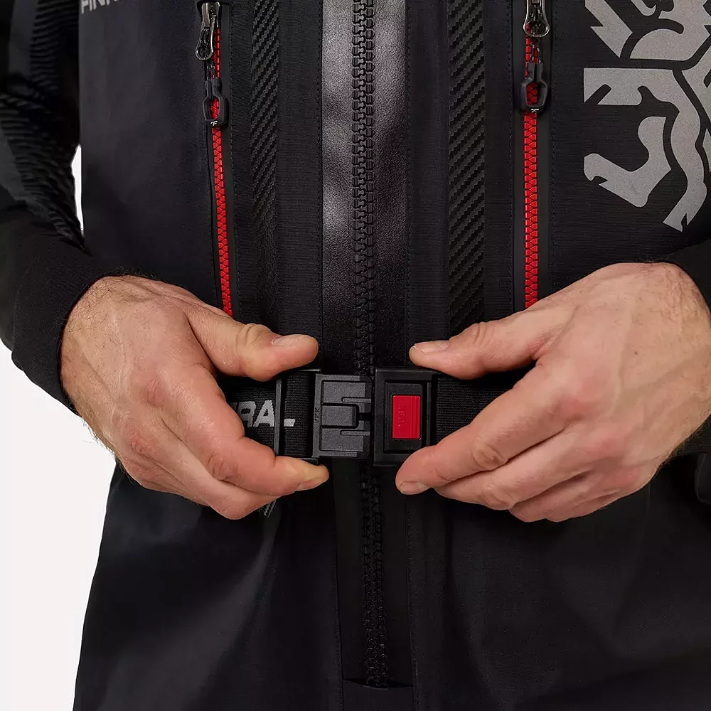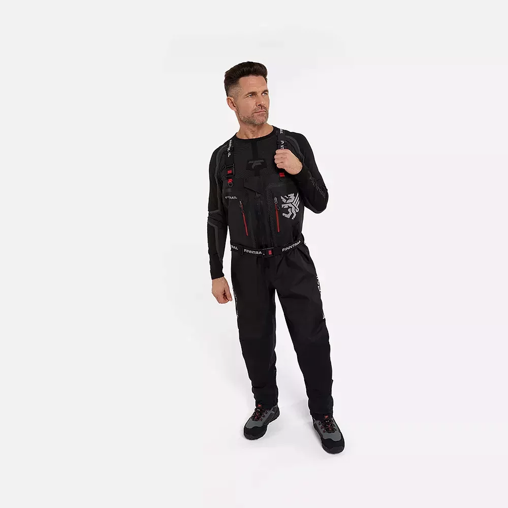 Näiden kahluuhousujen ergonominen leikkaus mahdollistaa rajoittamattoman liikkumisen ja varmistaa mukavuuden kaikissa aktiviteeteissa. Joustava vyötärönauha ja säädettävät henkselit mahdollistavat räätälöidyn istuvuuden kaikille vartalotyypeille. Kaksi vedenpitävää rintataskua YKK-vetoketjuilla sekä ylimääräinen vedenpitävä sisätasku pitävät tärkeät tavarasi kuivina. Päävetoketju on täysin suojattu vedeltä, mikä säilyttää kahluuhousujen eheyden märissä olosuhteissa.