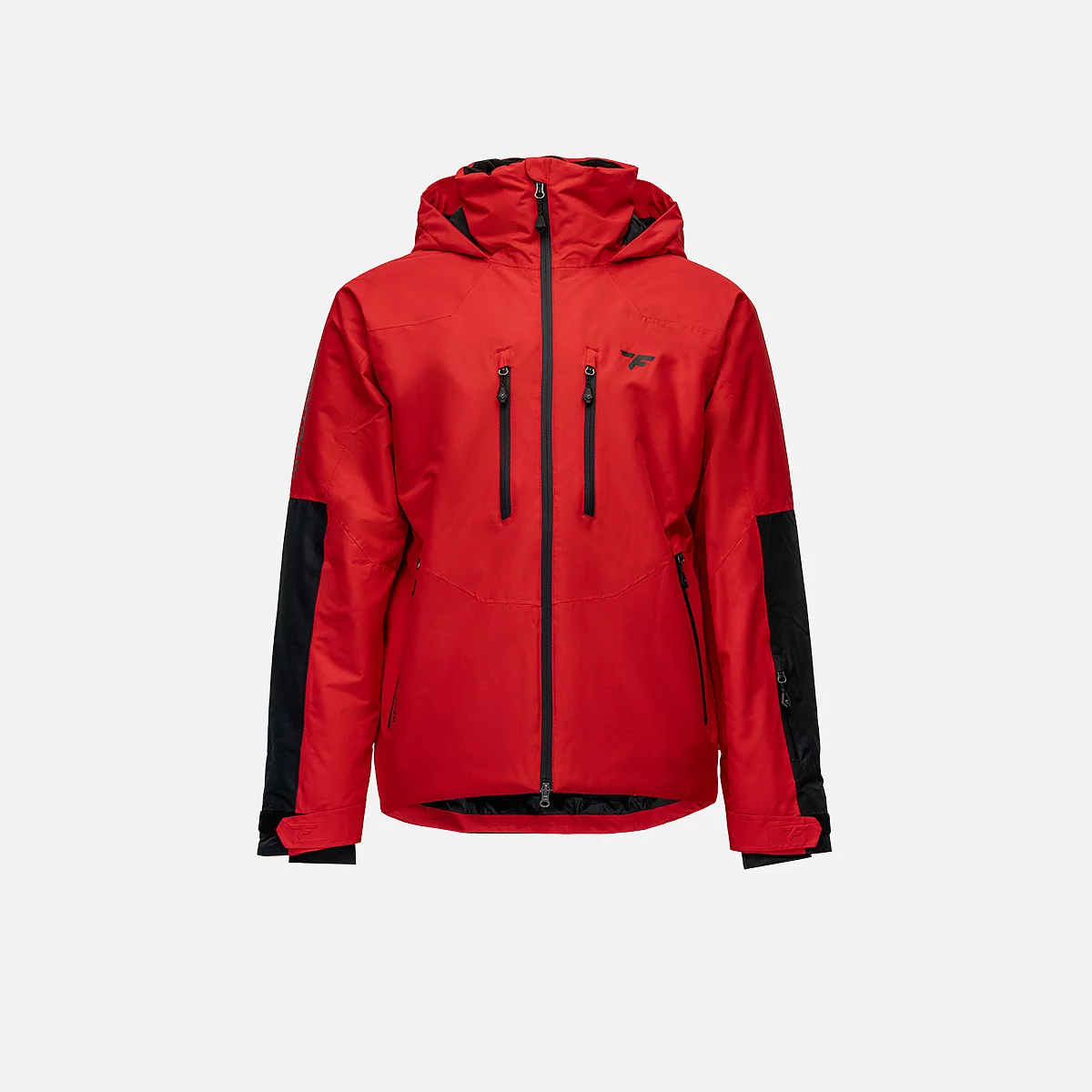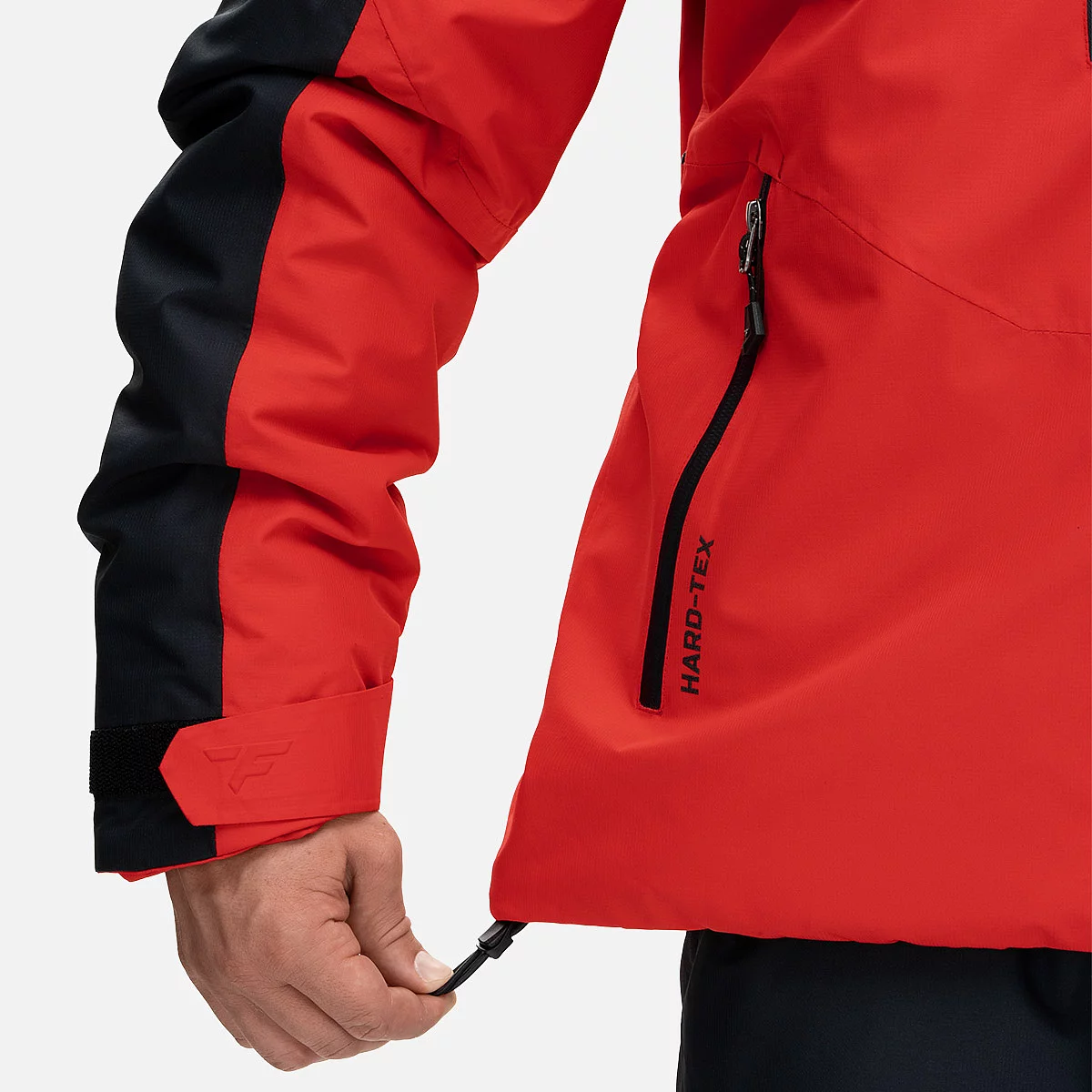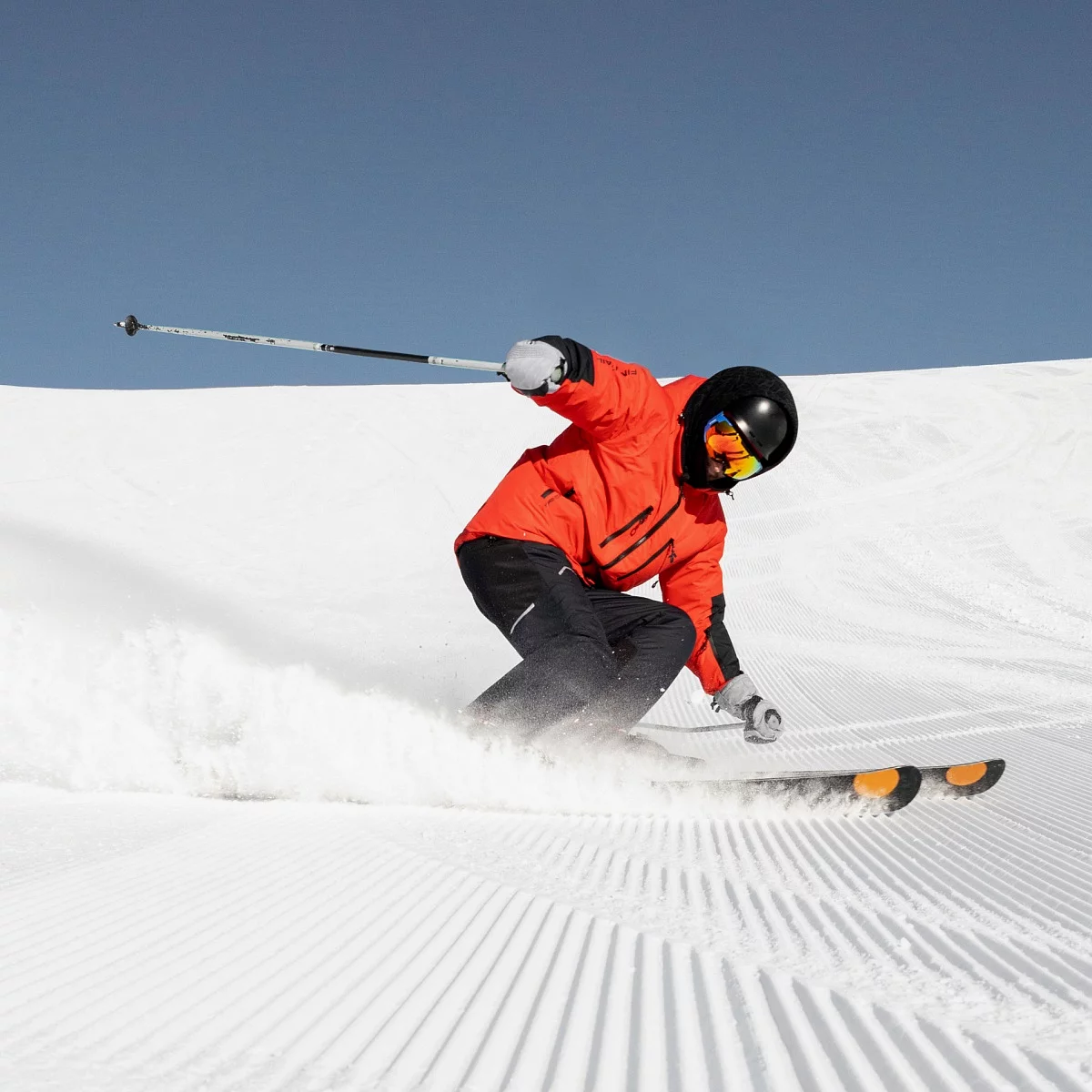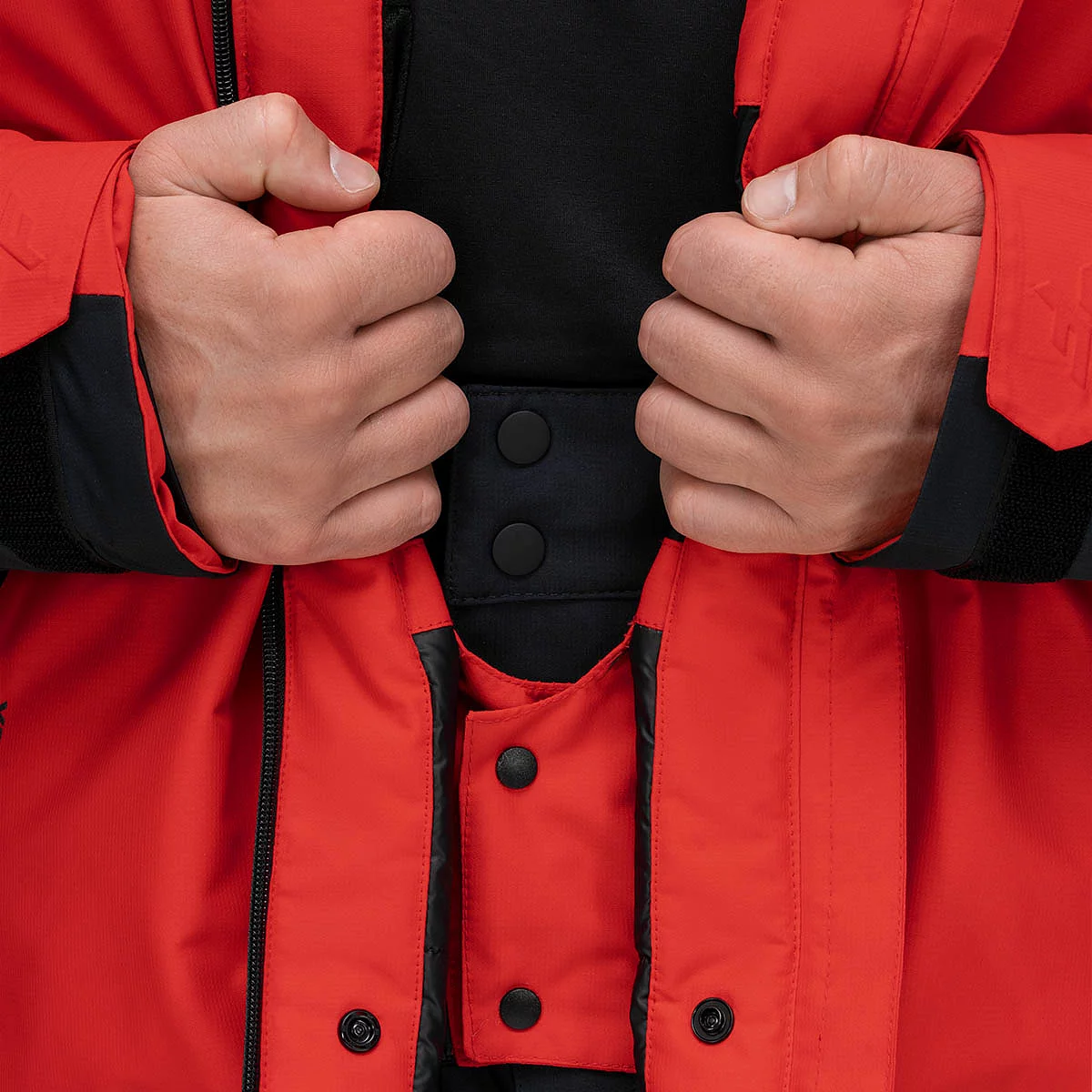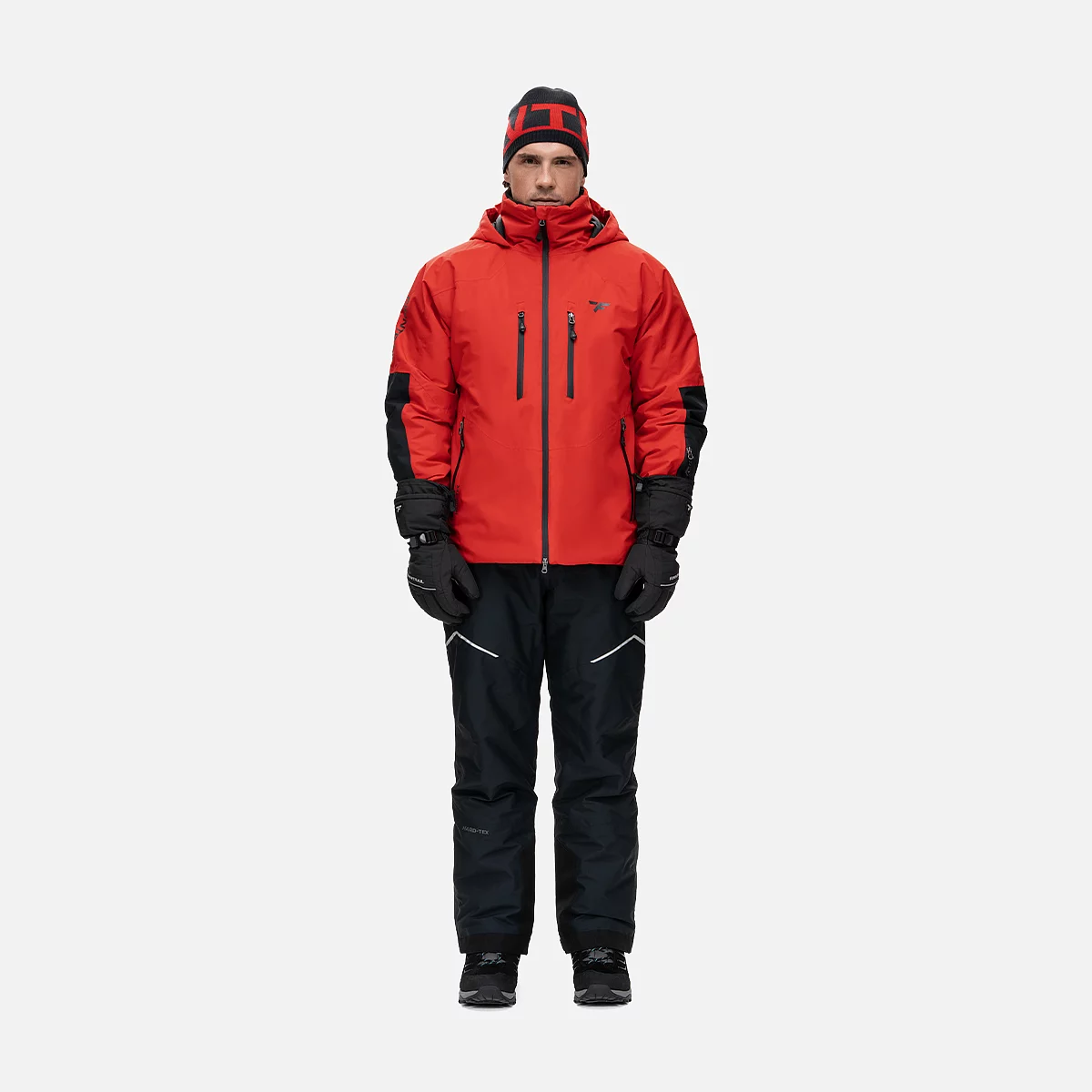The jacket’s two-way central zipper is protected by a Velcro storm flap. The hood features a laminated brim and dual-plane adjustment for better coverage. Inner elastic cuffs and outer adjustable cuffs with rubberized branded tips keep snow and wind out. From the safety D-ring for attaching a kill switch to the snowproof skirt and reinforced design, every element is engineered for comfort, durability, and maximum winter performance.