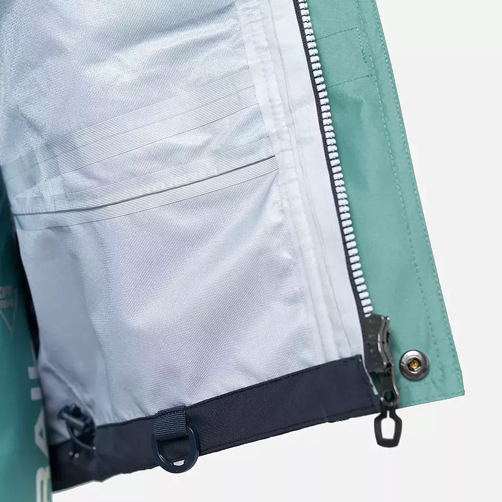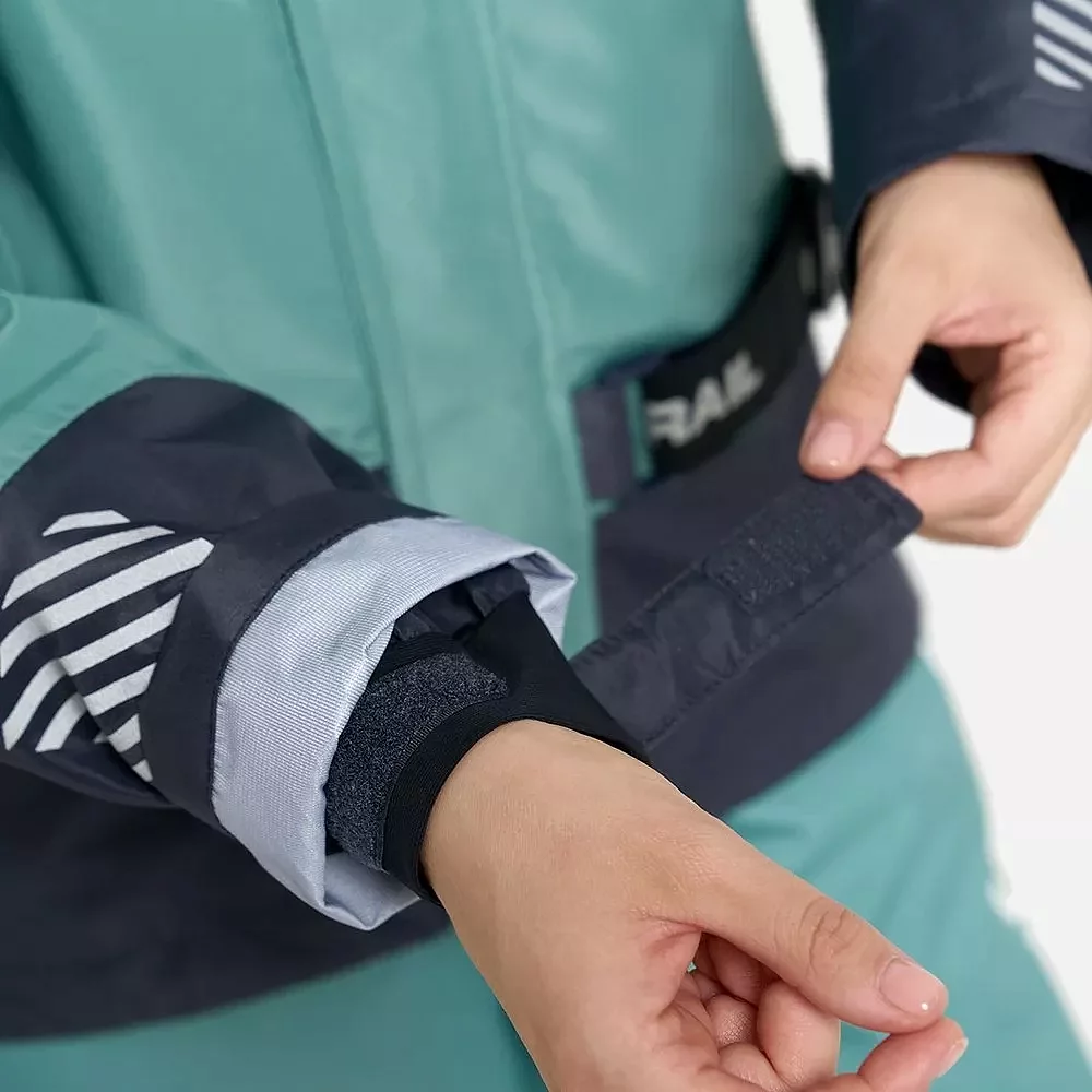 The sleeves feature snug-fitting cuffs made of rubberized elastic material. The jacket’s central flap has a magnetic closure for ease of use and additional protection from the elements. Inside, the jacket provides two more pockets for extra storage. The bottom of the jacket includes a volume adjustment feature to ensure a perfect fit. All seams and zippers are hermetically sealed to prevent water intrusion, ensuring maximum protection.