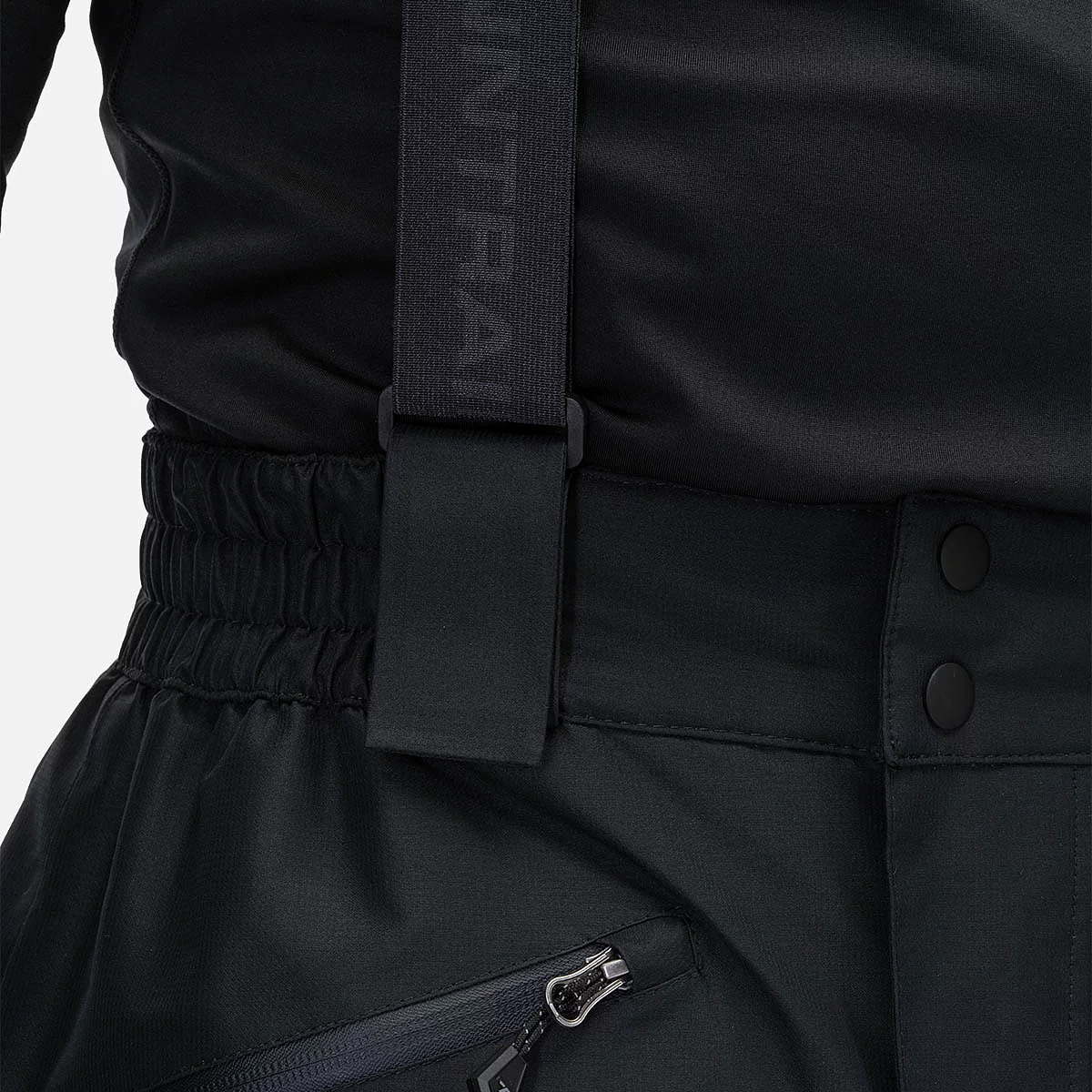 Insulated with Thermalrate (100 g/m²) and featuring a microfleece-lined waistband, these pants keep you warm without restricting movement. Adjustable, detachable suspenders allow for a personalized fit, and elastic inserts on the sides of the waistband enhance comfort. Two side pockets with waterproof zippers are lined with microfleece to keep hands warm. The right pocket includes an integrated webbing loop with a D-ring for keys or a kill switch.