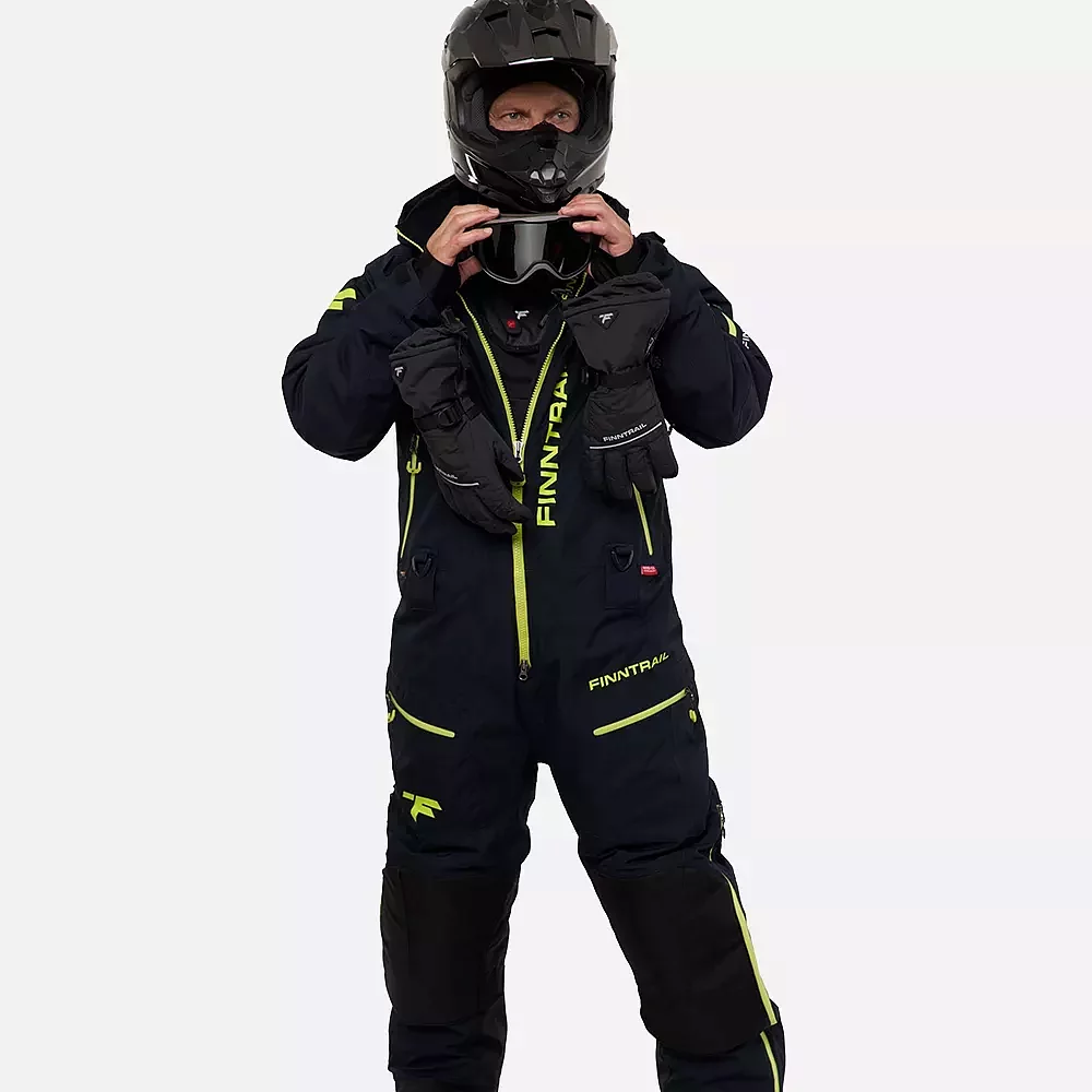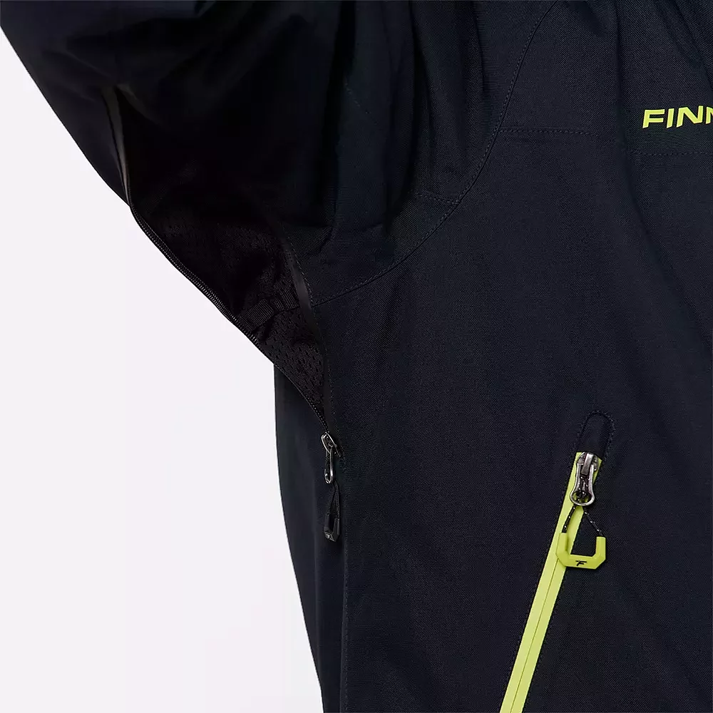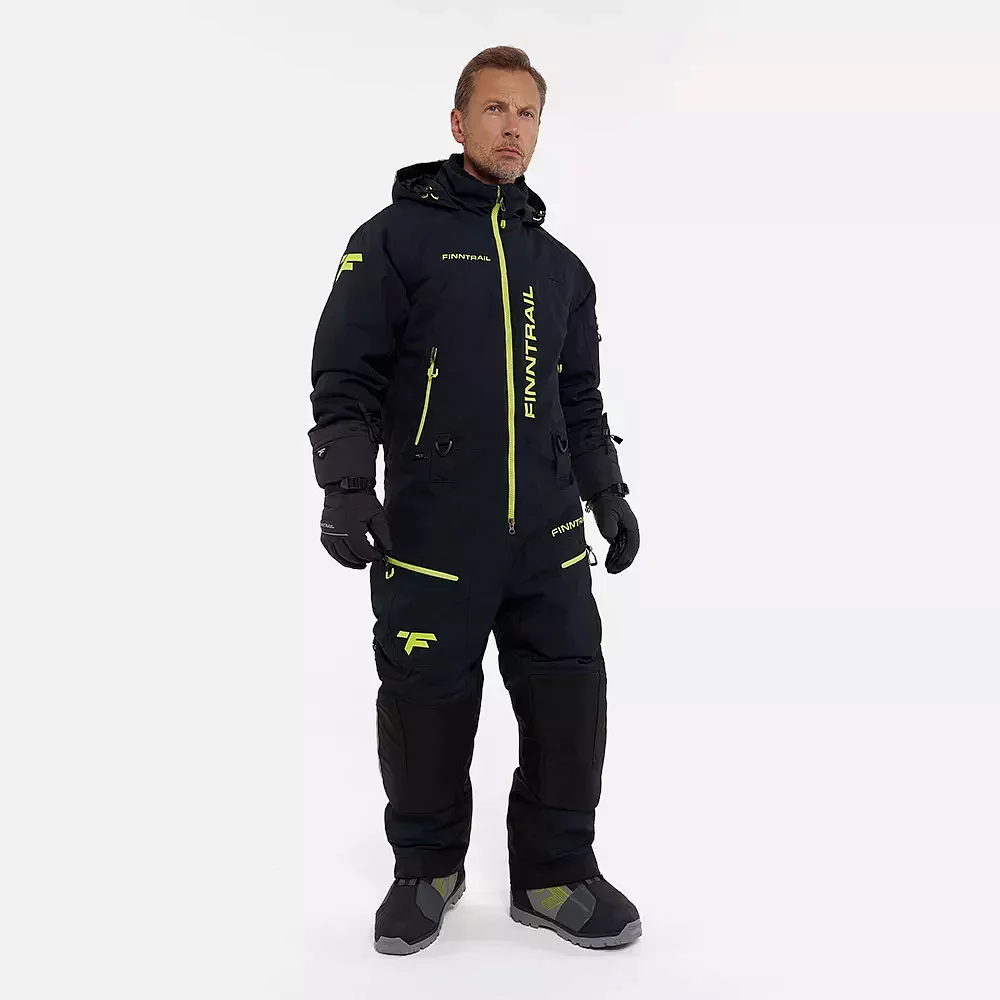 All seams are sealed. The overalls are equipped with suspenders for comfortable height adjustment. Inner Lycra cuffs with a gap for the thumb provide comfort and protection against wind and snow. Inner gaiters prevent snow and moisture from getting inside overalls and boots. Moisture-resistant two-way zipper protects against water ingress and lets you do the deed easily. The overalls are equipped with a detachable and adjustable hood, a collar made of hygroscopic microfleece, a ventilation system, adjustable waist, an inner loop for headphones, an ergonomic knee cut, two spacious zipper side pockets, two zipper chest pockets, one sleeve pocket, one inner zipper pocket, and one inner mesh pocket.