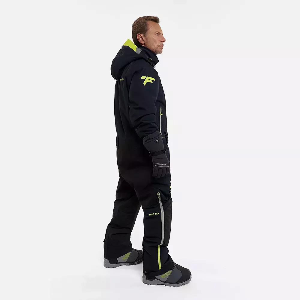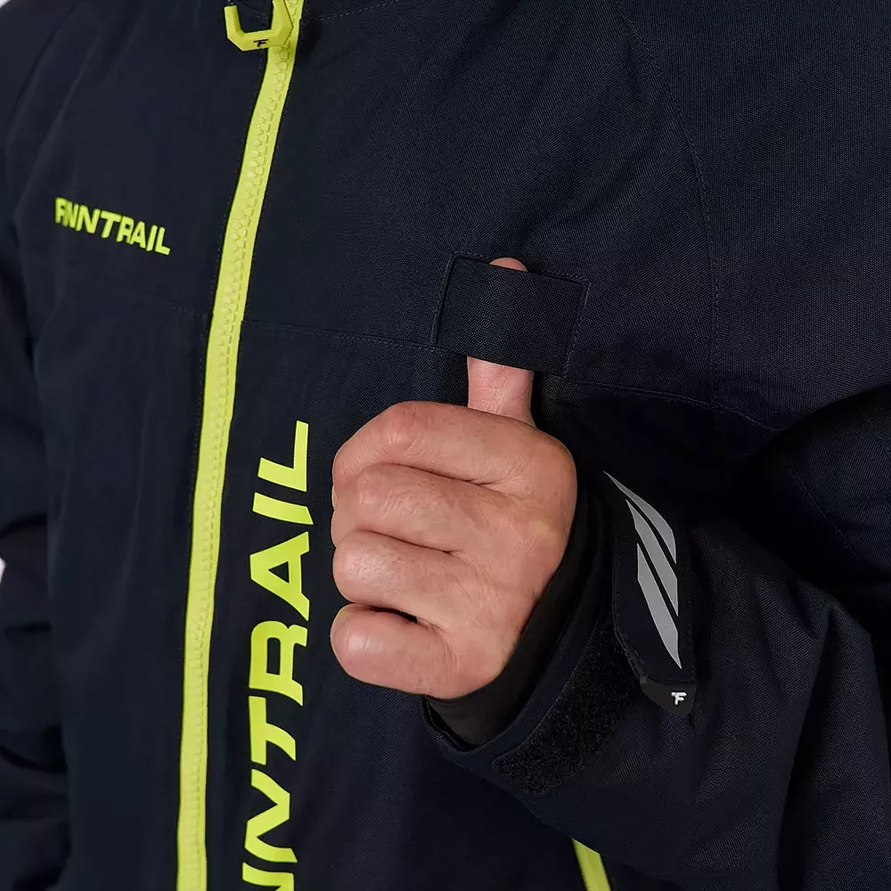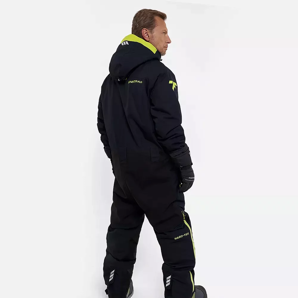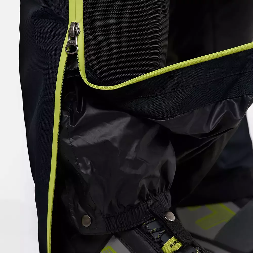 All seams are sealed. The overalls are equipped with suspenders for comfortable height adjustment. Inner Lycra cuffs with a gap for the thumb provide comfort and protection against wind and snow. Inner gaiters prevent snow and moisture from getting inside overalls and boots. Moisture-resistant two-way zipper protects against water ingress and lets you do the deed easily. The overalls are equipped with a detachable and adjustable hood, a collar made of hygroscopic microfleece, a ventilation system, adjustable waist, an inner loop for headphones, an ergonomic knee cut, two spacious zipper side pockets, two zipper chest pockets, one sleeve pocket, one inner zipper pocket, and one inner mesh pocket.